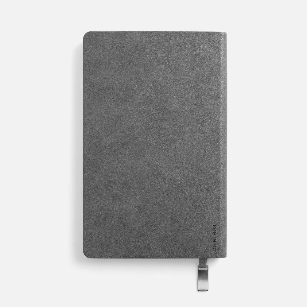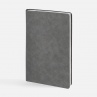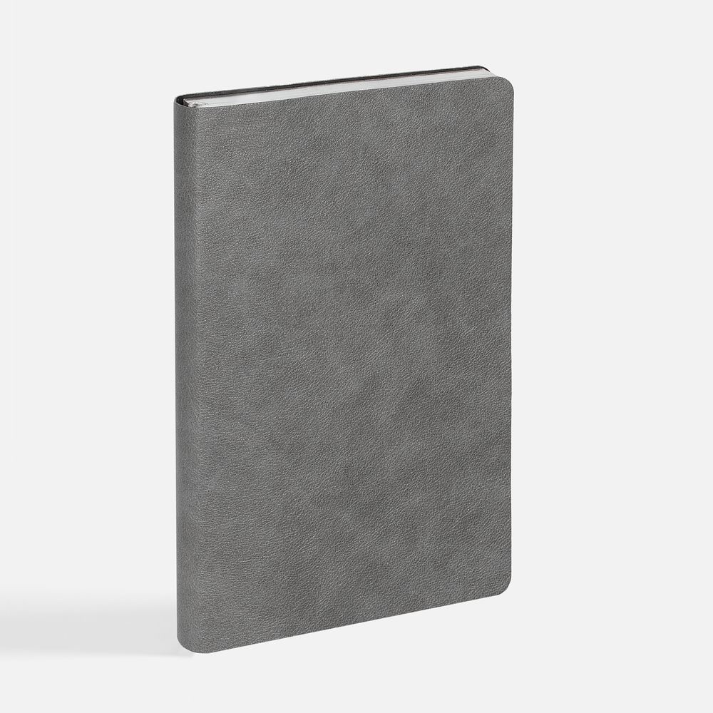 Ежедневник с гибкой обложкой, выполнен из материала Petrus, серый СС, дополнен серым ляссе с металлическим шильдиком.Блок 951, без календарной сетки и информационного блока:Кол-во страниц — 256;Бумага — белая, плотность 70 г/м?;Форзац и нахзац — белыеОбрез блока — серебристый.