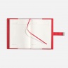 Ежедневник в мягком переплете со съемной обложкой, дополнен застежкой-хлястиком с металлическим шильдом на кнопке, двойным ляссе и капталом.
