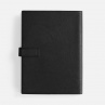 Ежедневник в мягком переплете со съемной обложкой, дополнен застежкой-хлястиком с металлическим шильдом на кнопке, двойным ляссе и капталом.