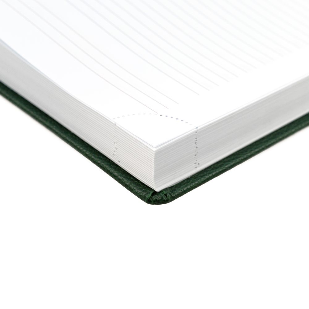 Ежедневник в твердой обложке c поролоном, выполнен из материала La Fite, зеленый FF, дополнен ляссе белого цвета.