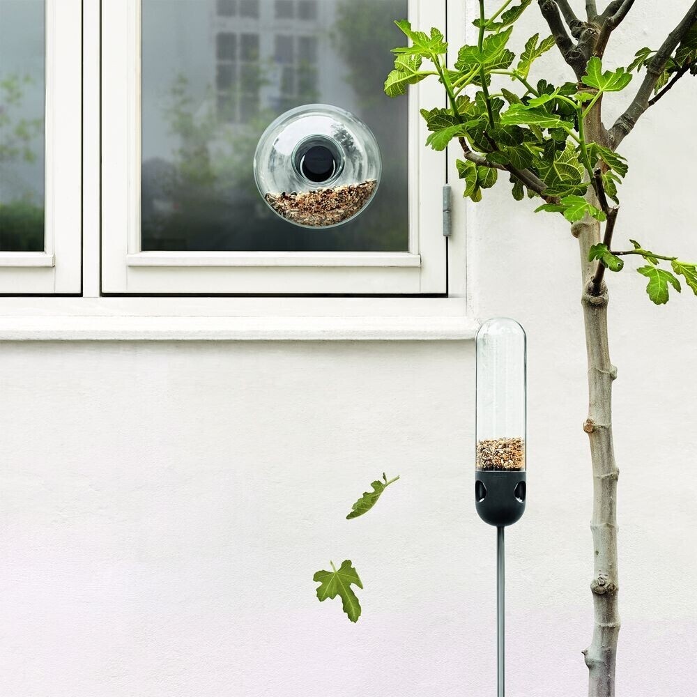 Наблюдайте за птицами вблизи, не выходя из дома. Дизайн кормушки рассчитан на то, что садовые птички легко приземлятся прямо на край кормушки и угостятся приготовленным для них лакомством. Сеанс любительской орнитологии может оказаться долгим — емкость кормушки 350 мл.Крепится на стекло. Для того чтобы вымыть окно или насыпать новую порцию корма, просто аккуратно снимите кормушку, а затем снова прикрепите на то же крепление.Стекло кормушки рассчитано на большие перепады температуры, поэтому кормушка может находиться на улице круглый год.Мыть в посудомоечной машине.