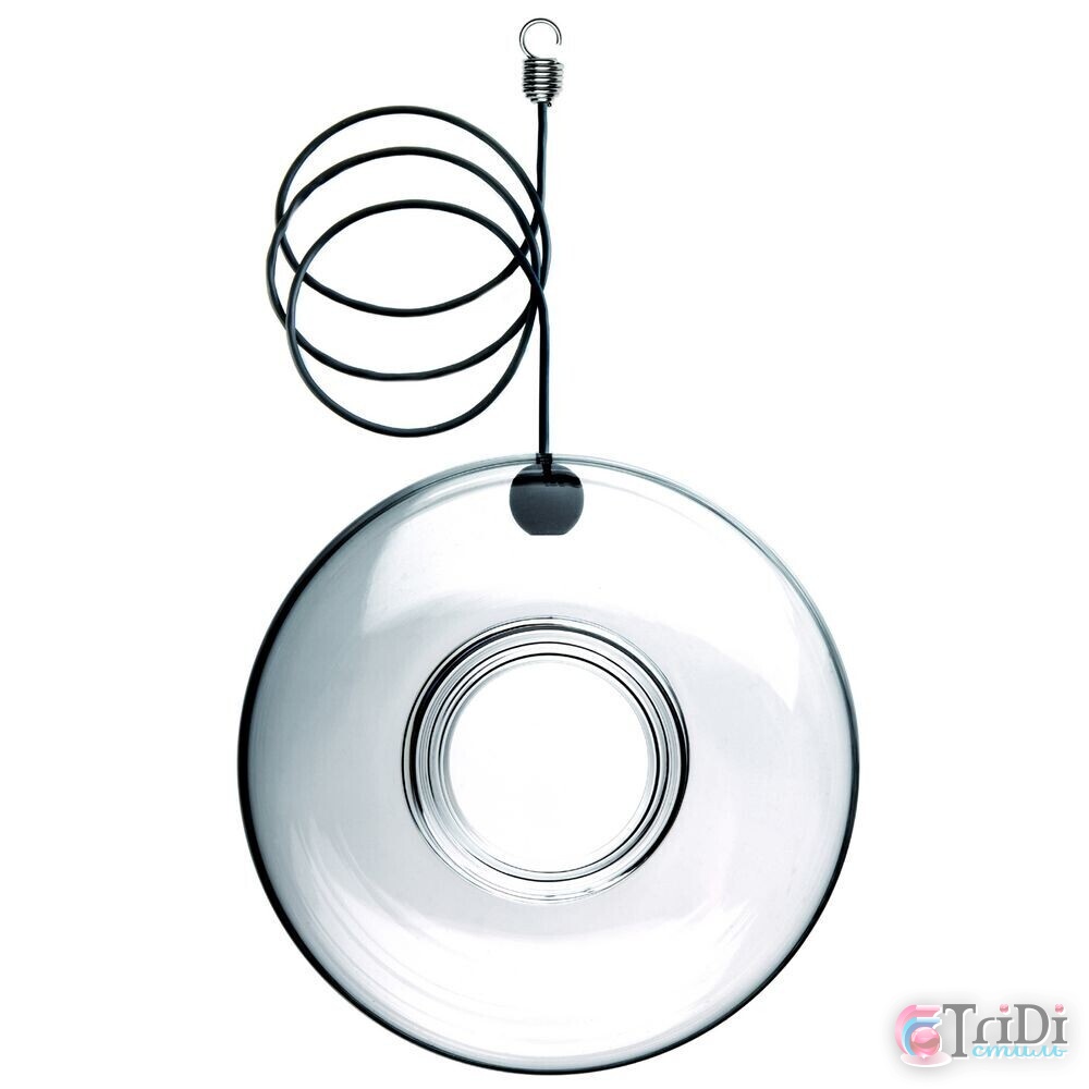 Кормушка подходит для кормления мелких птиц. Изготовлена из выдувного стекла и не боится перепадов температуры. С помощью шнура с крючком кормушку легко подвесить на дереве или на веранде.Можно также использовать для декоративного оформления интерьера: хранить мелочи, высаживать растения.
