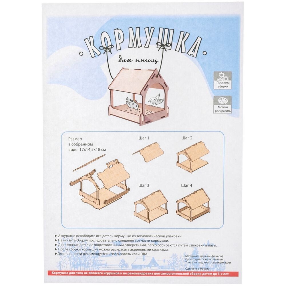Кормушка-конструктор Feeding Point — это многофункциональный подарок для детей и взрослых. За сборкой кормушки можно весело провести время с семьей и друзьями, а готовое изделие прекрасно дополнит атмосферу сада и поможет птицам пережить холодную зиму.Собранную модель можно использовать сразу после сборки или декорировать и покрыть лаком.Поставляется в разобранном виде на двух деревянных плашках вместе с подробной инструкцией по сборке. Для надежности можно проклеить изделие клеем ПВА. Упакована в полиэтиленовый пакет и картонный конверт.