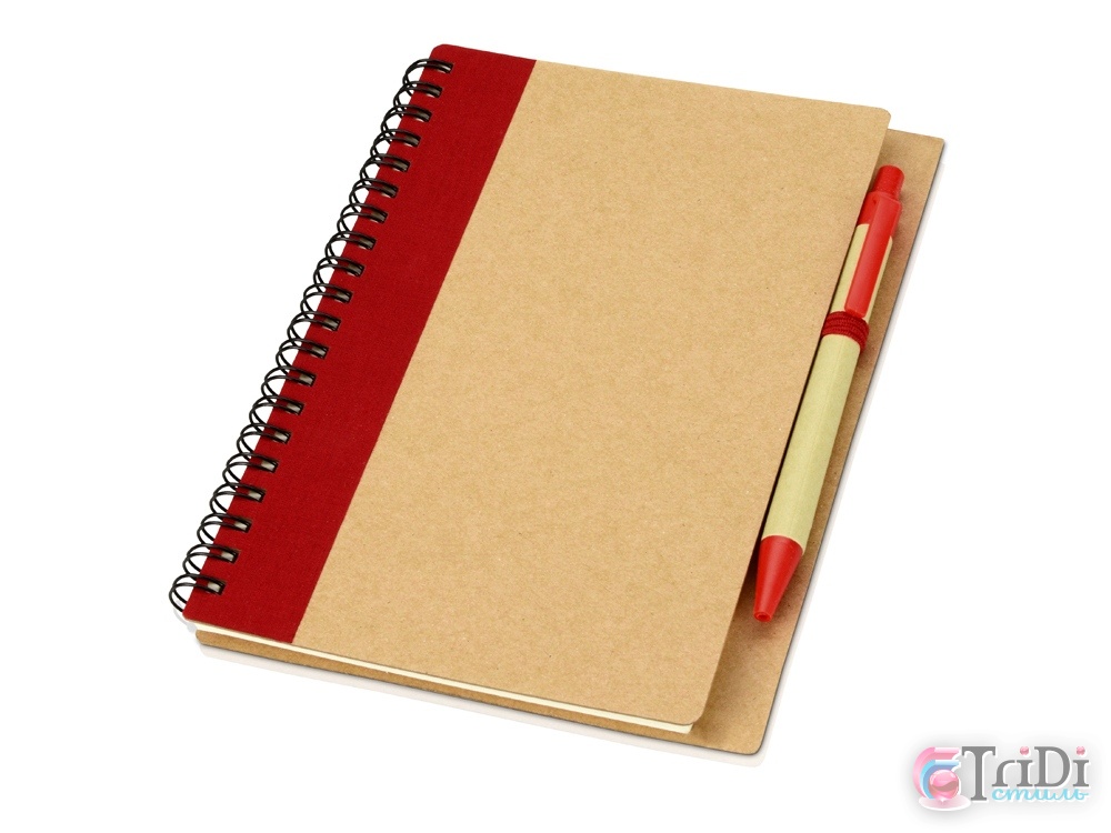 Блокнот с 60 листами переработанной бумаги 70 г/м2 и картонной ручкой в цвет блокнота.