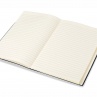 Эффектный блокнот с мягкой обложкой из кожзаменителя. Контрастная белая полоса. Темная основа возможна в трех цветовых вариантах: синий, зеленый и черный. 80 листов линованной бумаги, подарочная упаковка.