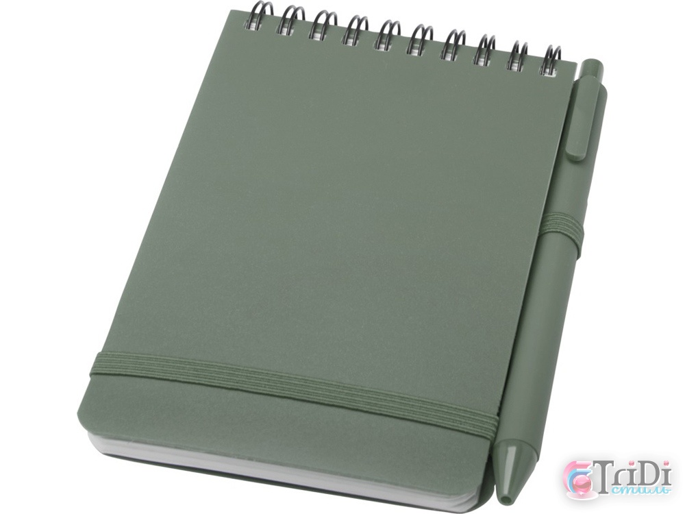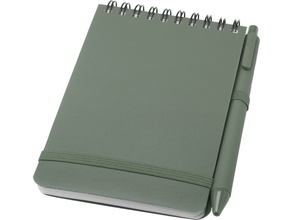 Блокнот Thalaasa формата А6 в твердой обложке из океанического пластика с шариковой ручкой - Зеленый яркий