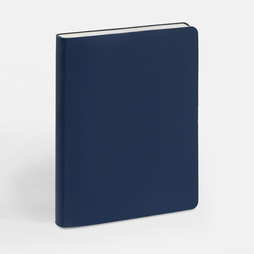 Ежедневник с гибкой обложкой, выполнен из материала Soft Touch, синий НН.Блок 207, датирован на 2026 год, с информационным блоком:Кол-во страниц — 320;Бумага — белая, плотность 70 г/м?;Форзац и нахзац — белые.
