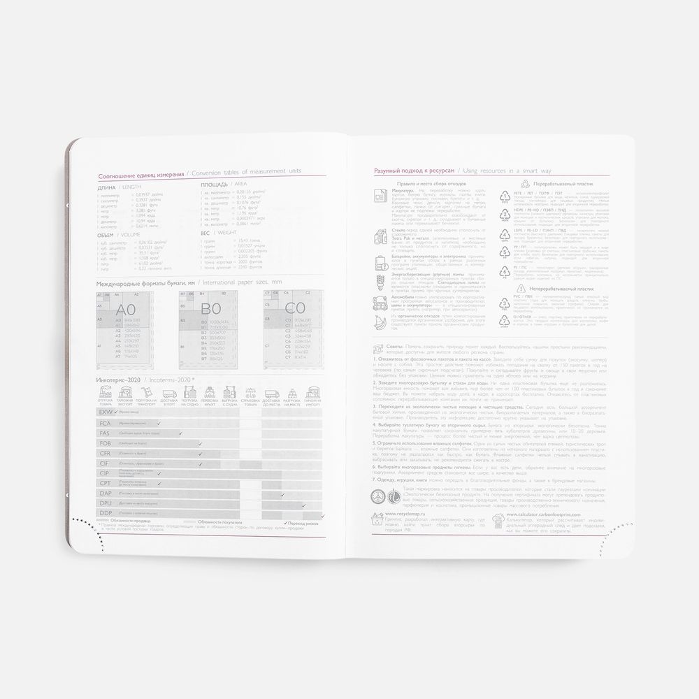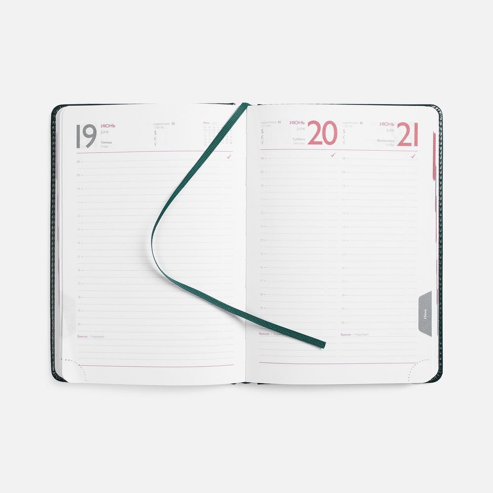 Ежедневник с твердой обложкой с поролоном из искусственной кожи Sarif, дополнен капталом и ляссе в цвет ежедневника. Блок c календарной сеткой и справочными материалами:Кол-во страниц — 352;Бумага — белая, плотность 70 г/м?.