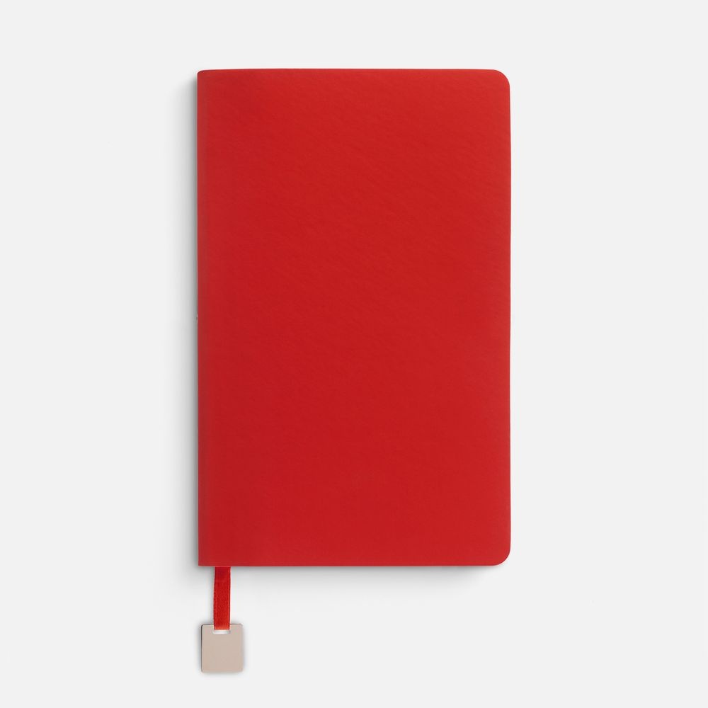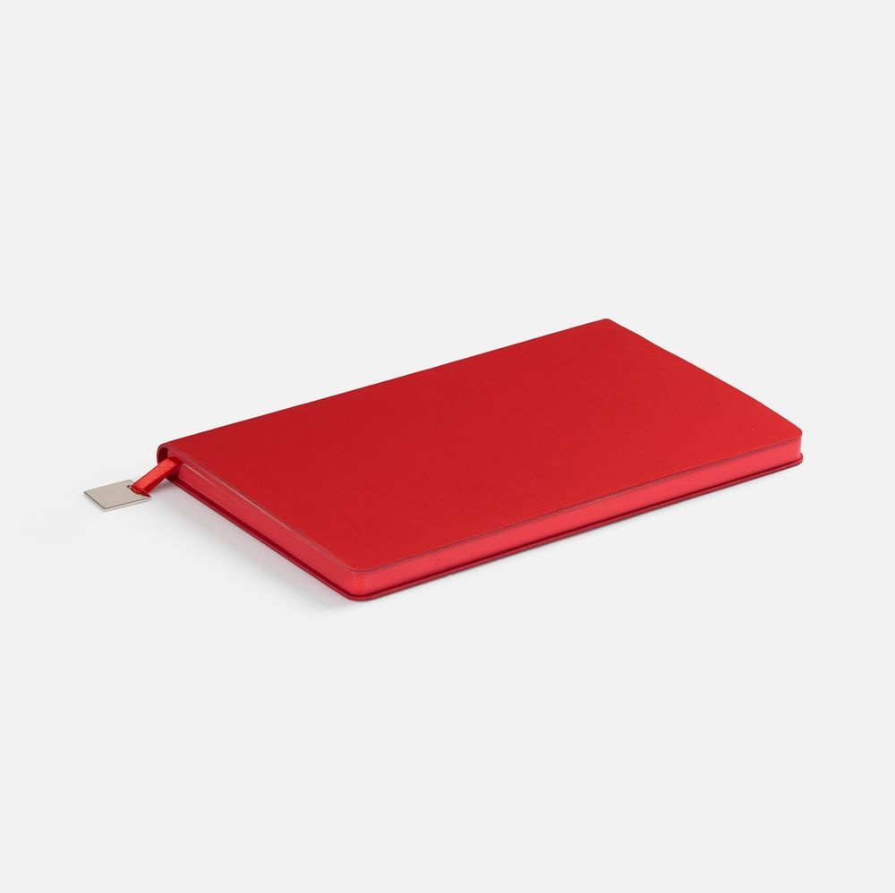 Ежедневник с гибкой обложкой, выполнен из материалов Soft Touch Ultra, красный РР, и Latte, красный (внутренняя часть обложки), дополнен ляссе в цвет обложки с металлическим шильдиком.Блок без календарной сетки и информационного блока:Кол-во страниц — 192;Бумага — тонированная, плотность 80 г/м?;Обрез — красный;Форзац и нахзац — тонированные.