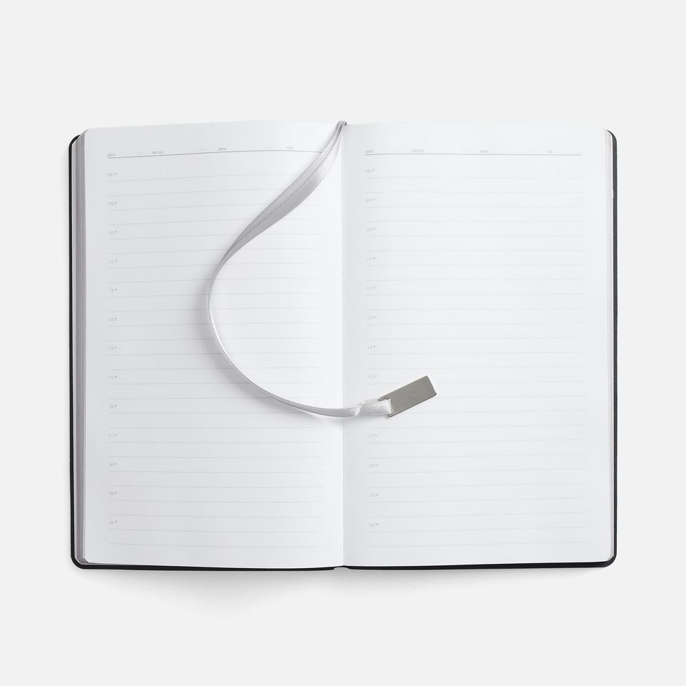Ежедневник с гибкой обложкой, выполнен из материала Petrus, красный РР, дополнен серым ляссе с металлическим шильдиком.Блок 951, без календарной сетки и информационного блока: Кол-во страниц — 256;Бумага — белая, плотность 70 г/м?;Форзац и нахзац — белыеОбрез блока — серебристый.