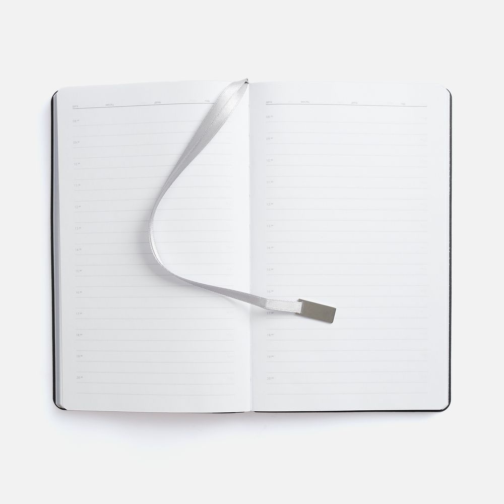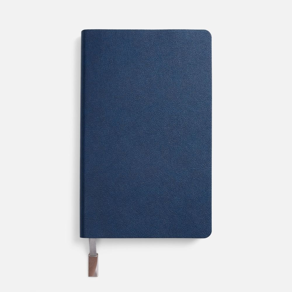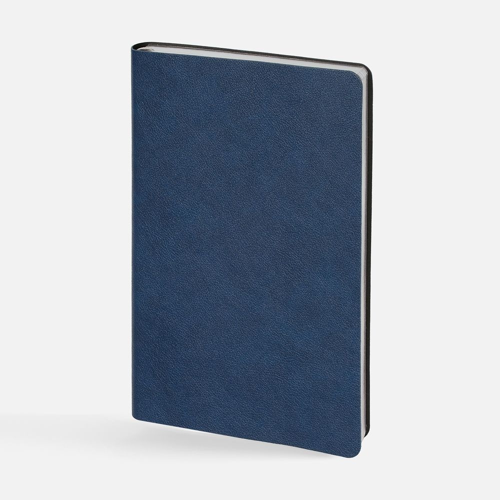 Ежедневник с гибкой обложкой, выполнен из материала Petrus, синий НН, дополнен серым ляссе с металлическим шильдиком.Блок 951, без календарной сетки и информационного блока:Кол-во страниц — 256;Бумага — белая, плотность 70 г/м?;Форзац и нахзац — белыеОбрез блока — серебристый.