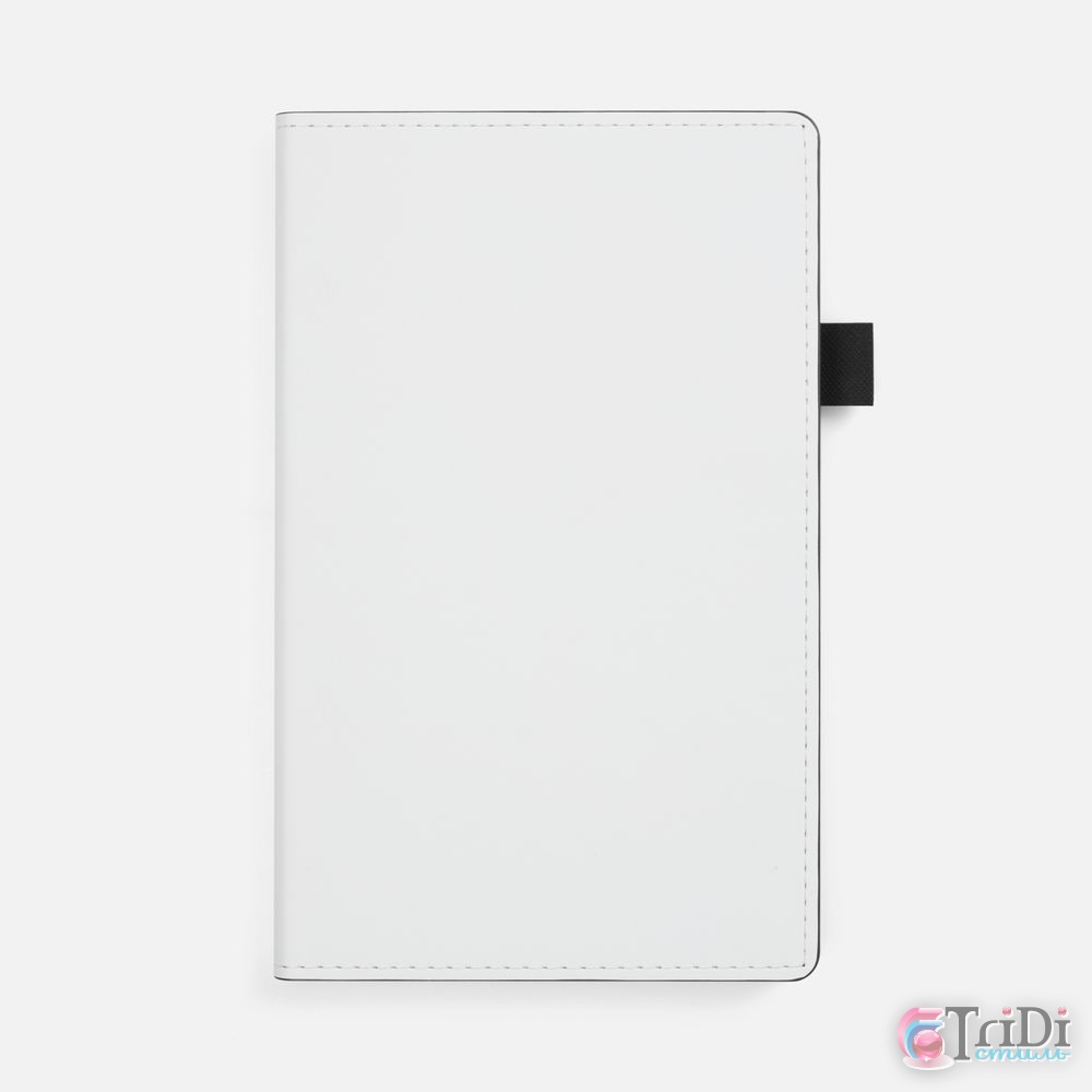Гибкая обложка, материал обложки — Soft Touch, белый BB и Latte, черный АА; материал петли для ручки — Nice Touch, черный АА. Срез обложки окрашен в черный цвет.
