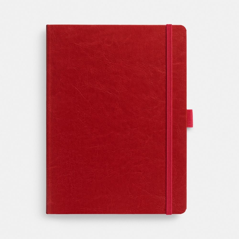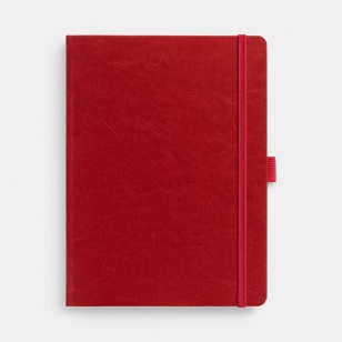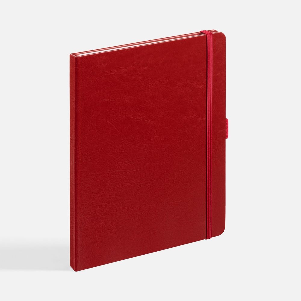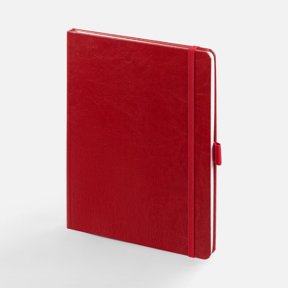 Еженедельник в твердой обложке выполнен из материала Nebraska, красный РР, дополнен резинкой, петлей для ручки и ляссе красного цвета.Блок 201, без информационного блока: