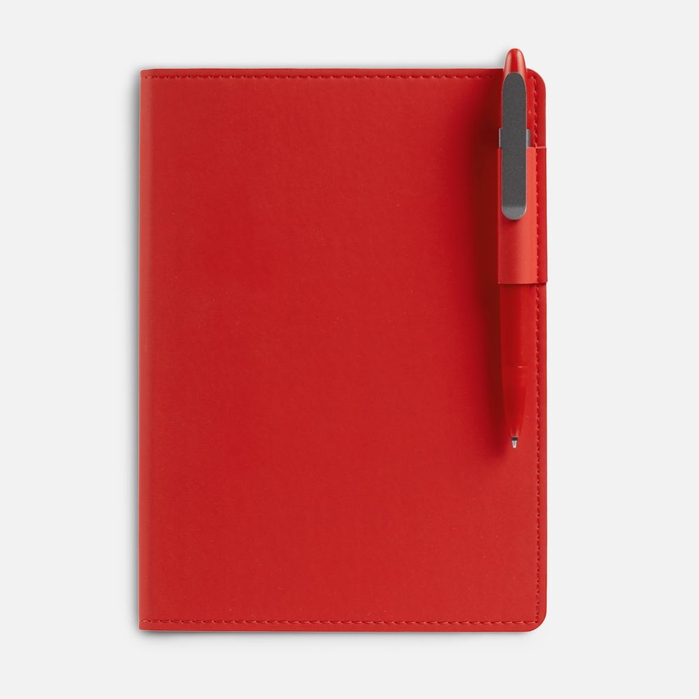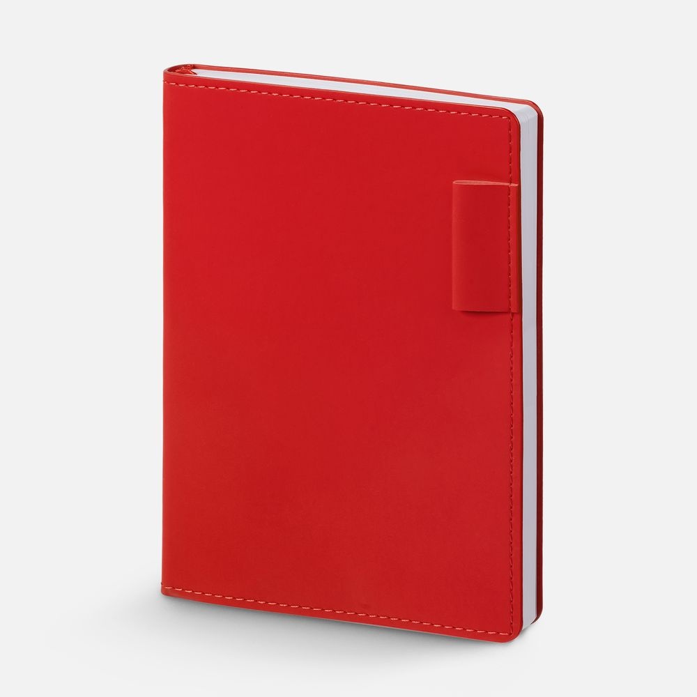 Ежедневник с гибкой обложкой из материала Soft Touch Ultra, красный РР и Latte, красный (внутренний материал), дополнен петелькой для ручки из покровного материала, капталом, ляссе и закрашенным срезом обложки в цвет материала. Блок 985, без календарной сетки и информационного блока:Кол-во страниц — 256;Бумага — белая, плотность 70 г/м?;Форзац и нахзац — белые.