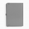Ежедневник с твердой обложкой без поролона, выполнен из материала Soft Touch, серый СС, дополнен резинкой шириной 1 см, петлей-резинкой для ручки, капталом и ляссе серого цвета.