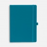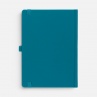 Ежедневник с твердой обложкой без поролона, выполнен из материала Soft Touch, цвет морской волны II, дополнен резинкой шириной 1 см, петлей-резинкой для ручки, капталом и ляссе темно-бирюзового цвета.