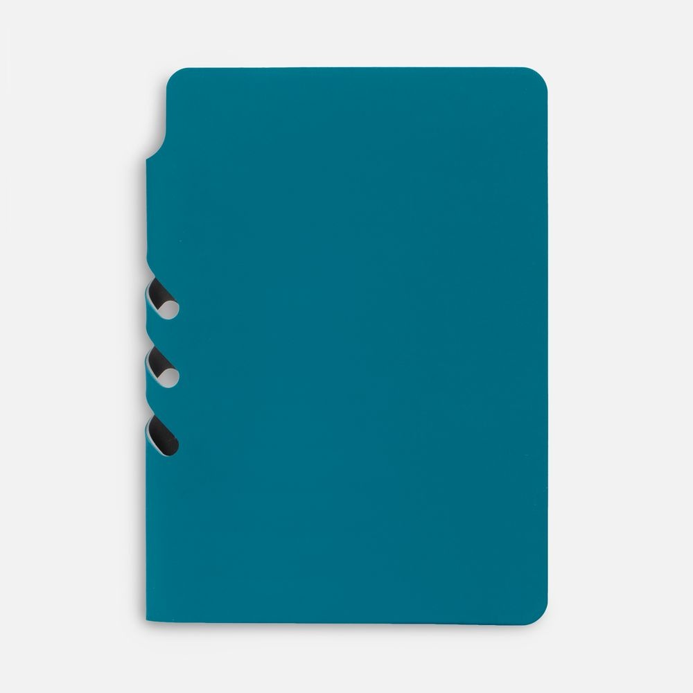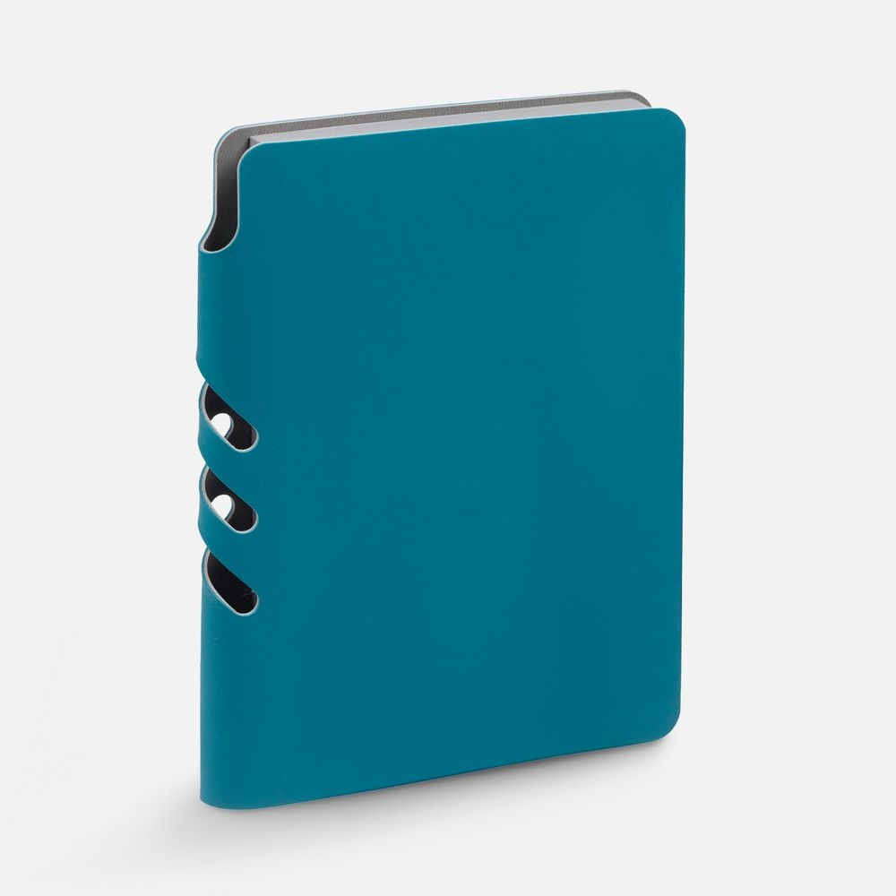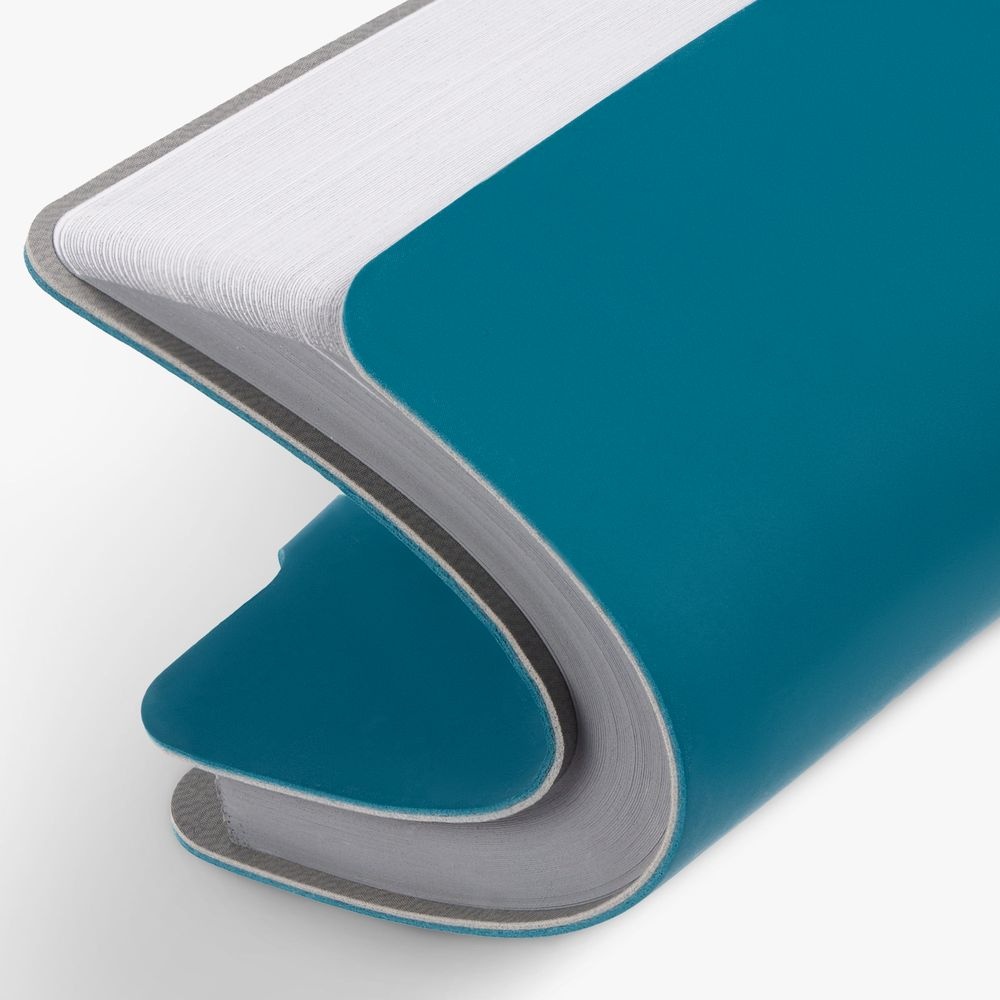 Ежедневник с гибкой обложкой выполнен из материала Soft Touch, цвет морской волны II и серого Latte (внутренняя часть обложки). Внутри корешка — специальное место для крепления ручки размером до 15х0,9 см.