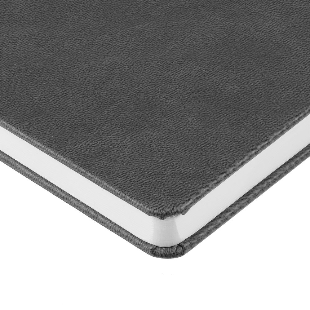 Ежедневник с твердой обложкой, выполнен из материала Latte, темно-серый ЕЕ, дополнен ляссе в цвет обложки.Блок 212, без календарной сетки и информационного блока:Кол-во страниц — 192;Бумага — белая, плотность 70 г/м?;Форзац и нахзац — белые.