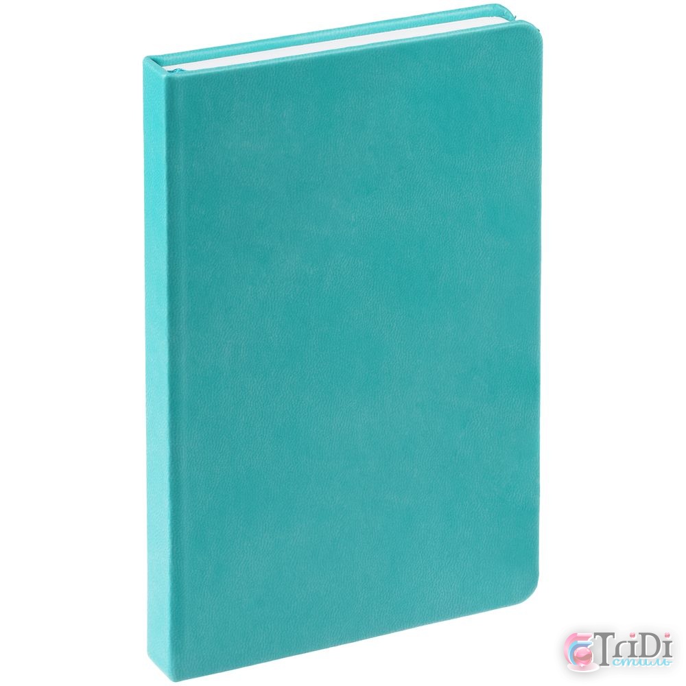 Ежедневник с твердой обложкой, выполнен из материала Latte, цвет морской волны II, дополнен ляссе в цвет обложки.