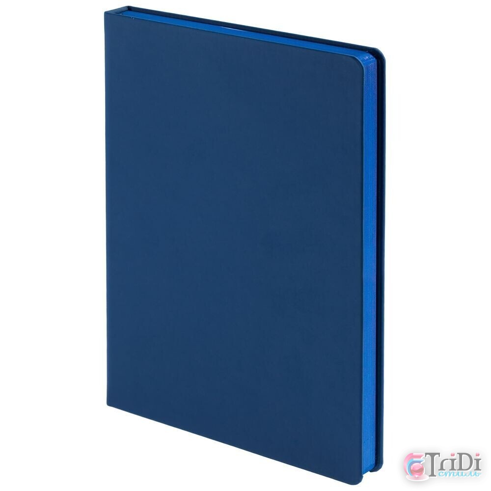Ежедневник с твердой обложкой и тонированным обрезом, выполнен из материала Soft Touch, синий НН, дополнен ляссе в цвет обложки.Блок 986, без календарной сетки и информационного блока:Кол-во страниц — 256;Бумага — тонированная, плотность 70 г/м?;Форзац и нахзац — синего цвета.