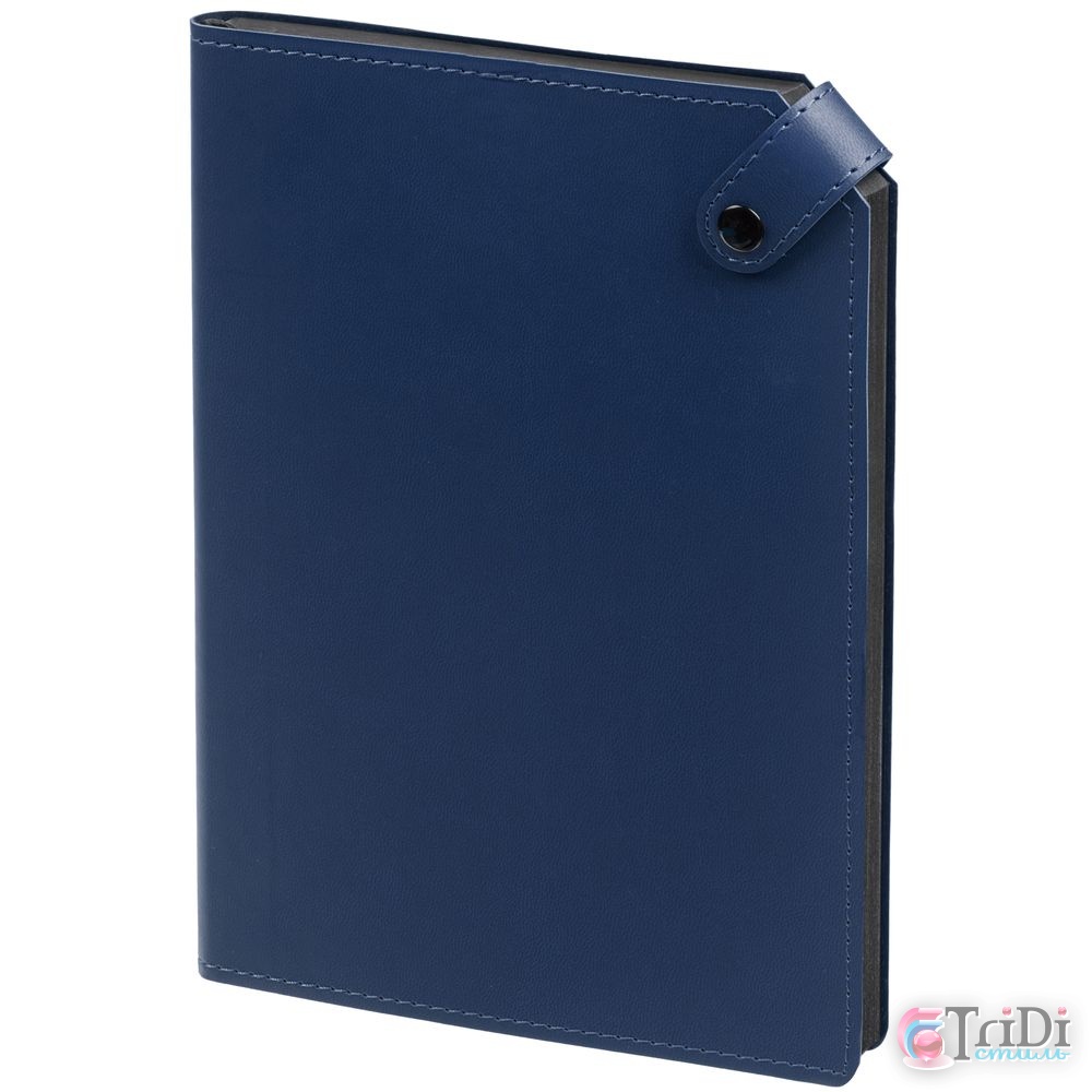 Ежедневник с гибкой обложкой и тонированным обрезом. Выполнен из материала Latte, темно-синий ХХ, дополнен черным ляссе.