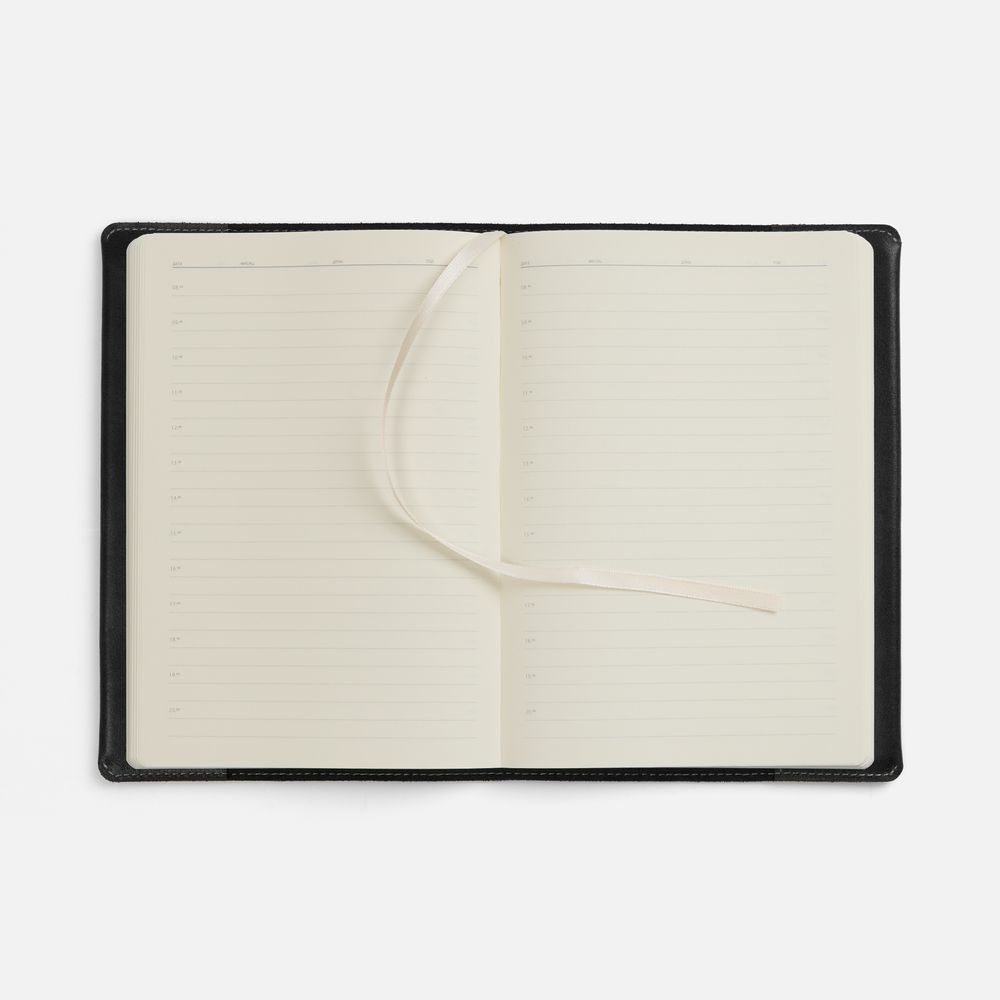 Ежедневник в мягкой суперобложке из натуральной кожи. Дополнен ляссе кремового цвета. Упакован в индивидуальную коробку.Блок 986: недатированный.Кол-во страниц — 256;Бумага — тонированная, плотность 70 г/м?;Форзац и нахзац — тонированные.