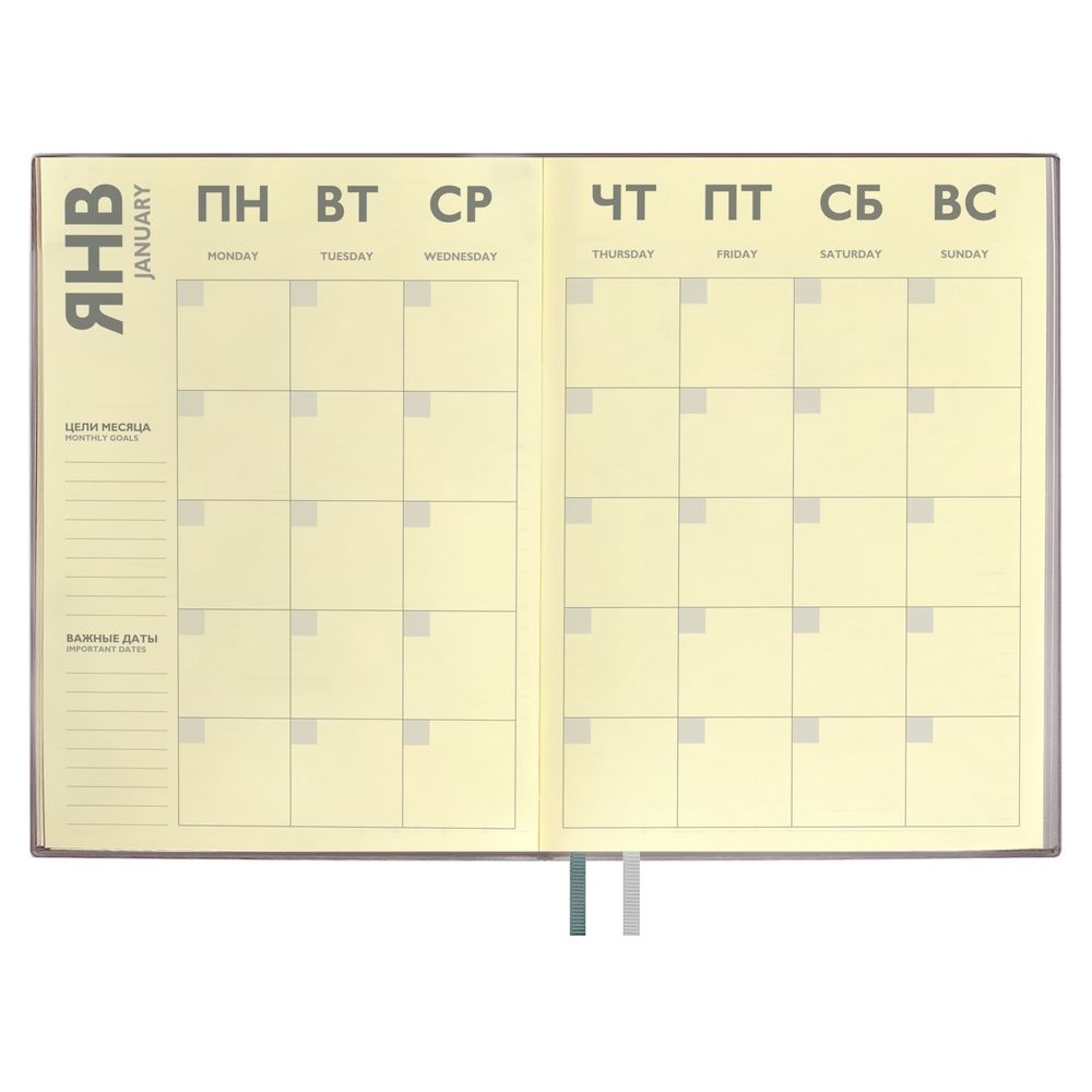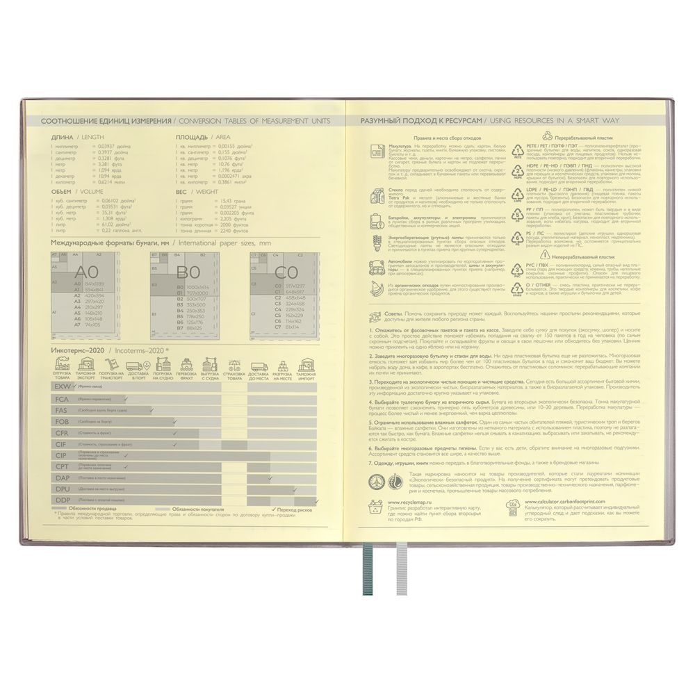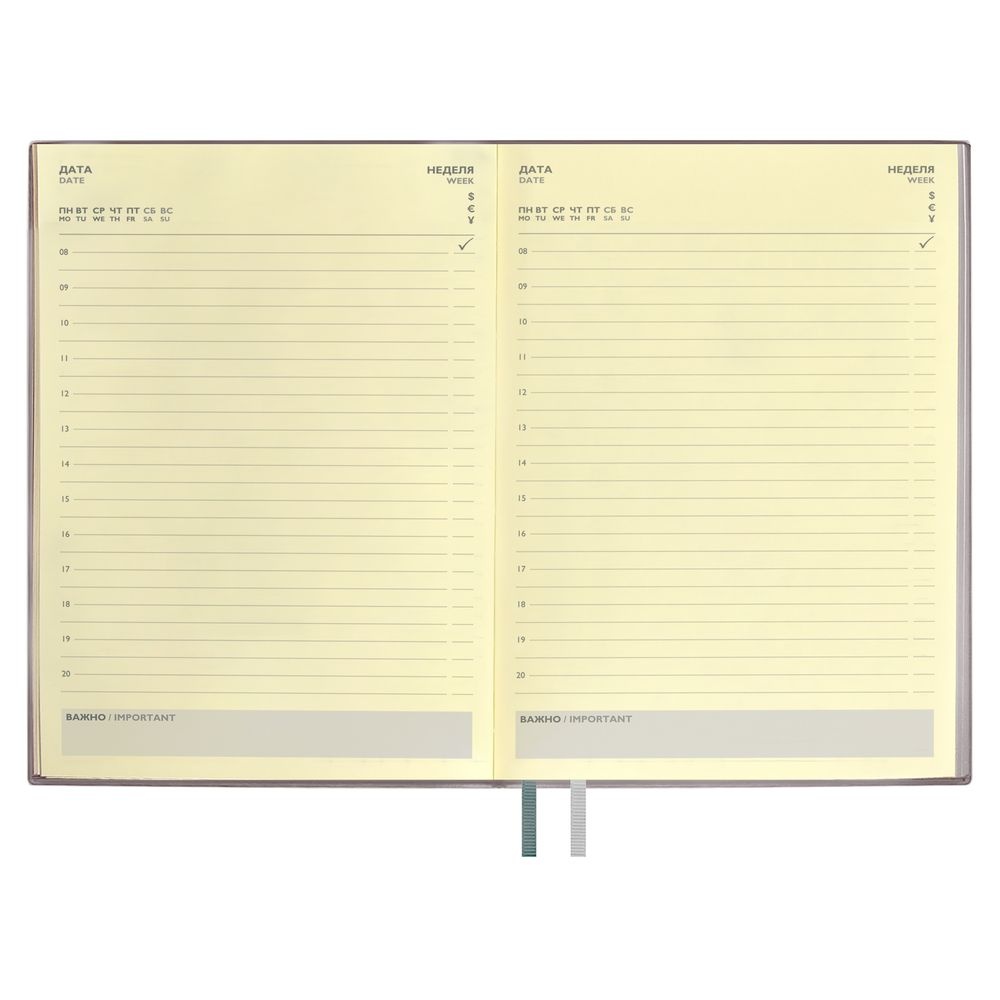 Ежедневник с гибкой обложкой и закладкой из искусственной кожи, дополнен капталом и двойным ляссе.Блок cо справочными материалами:Кол-во страниц — 320;Бумага — тонированная, плотность 70 г/м?.