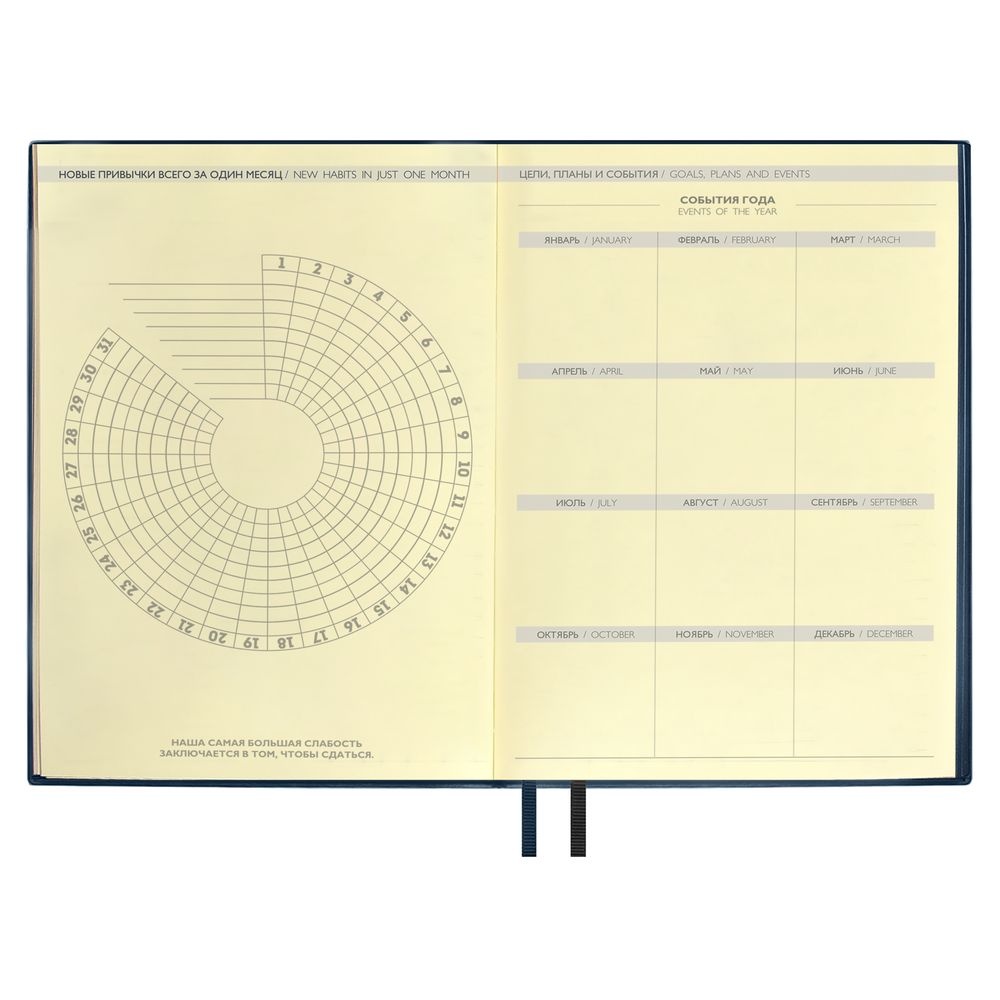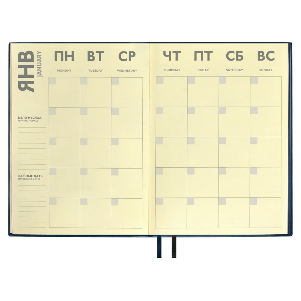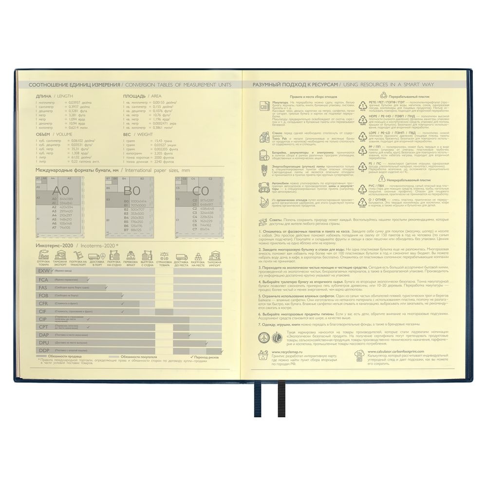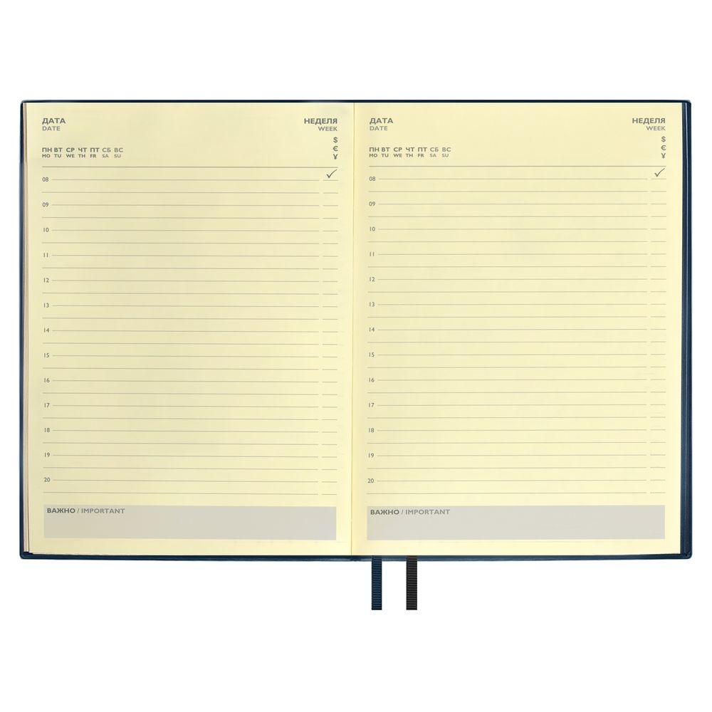 Ежедневник с гибкой обложкой и закладкой из искусственной кожи, дополнен капталом и двойным ляссе.Блок cо справочными материалами:Кол-во страниц — 320;Бумага — тонированная, плотность 70 г/м?.