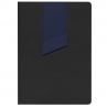 Ежедневник с гибкой обложкой, выполнен из материала Soft Touch, черный АА, дополнен петлей для ручки из материала Nice Touch, синий НН и цветным ляссе. Блок 985, без календарной сетки и информационного блока:Кол-во страниц — 256;Бумага — белая, плотность 70 г/м?;Форзац и нахзац — синие;Обрез блока — синий.