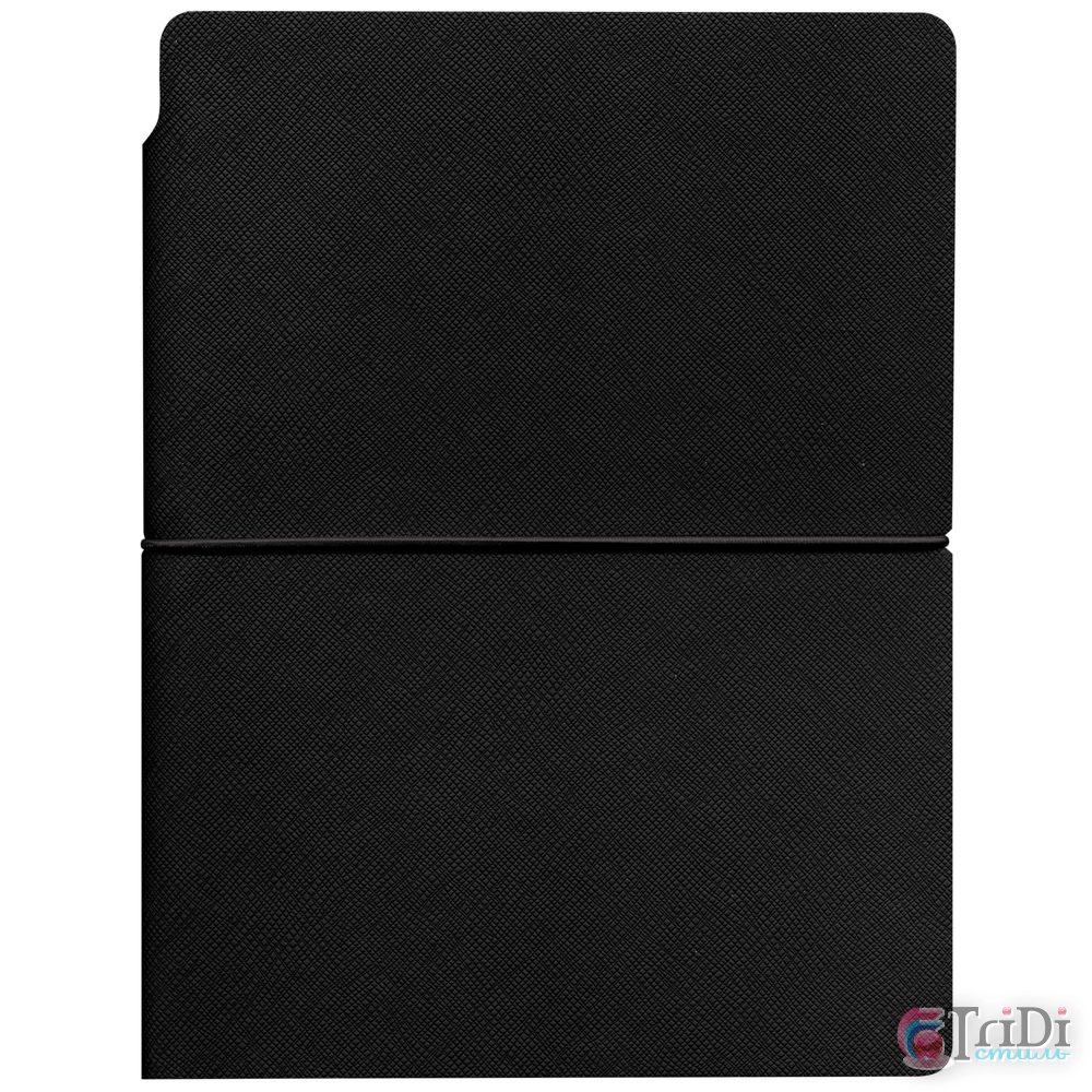 Ежедневник с гибкой обложкой выполнена из материала Nice Touch, черный и Latte, черный (внутренняя часть обложки), дополнен горизонтальной резинкой в цвет обложки. Внутри корешка — специальное место для крепления ручки размером до 15х1 см.