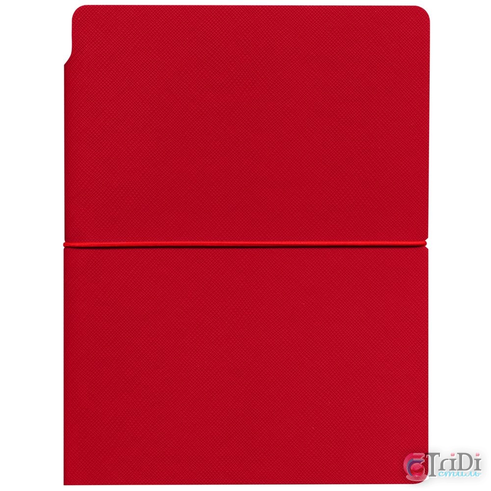 Ежедневник с гибкой обложкой выполнена из материала Nice Touch, красный и Latte, красный (внутренняя часть обложки), дополнен горизонтальной резинкой в цвет обложки. Внутри корешка — специальное место для крепления ручки размером до 15х1 см.