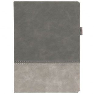 Ежедневник с твердой обложкой, без поролона, со сшивкой материалов Nubuck Touch серый СС, и Nubuck Touch тёмно-серый ЕЕ., дополнен двойным ляссе и петлей-резинкой для ручки.