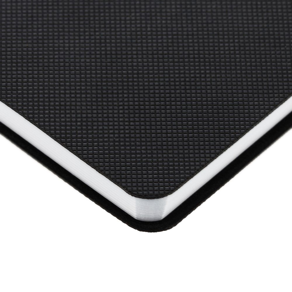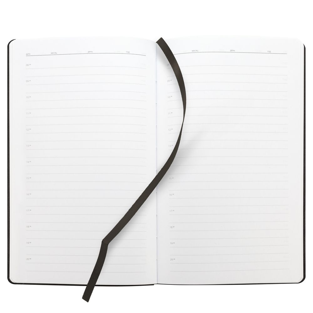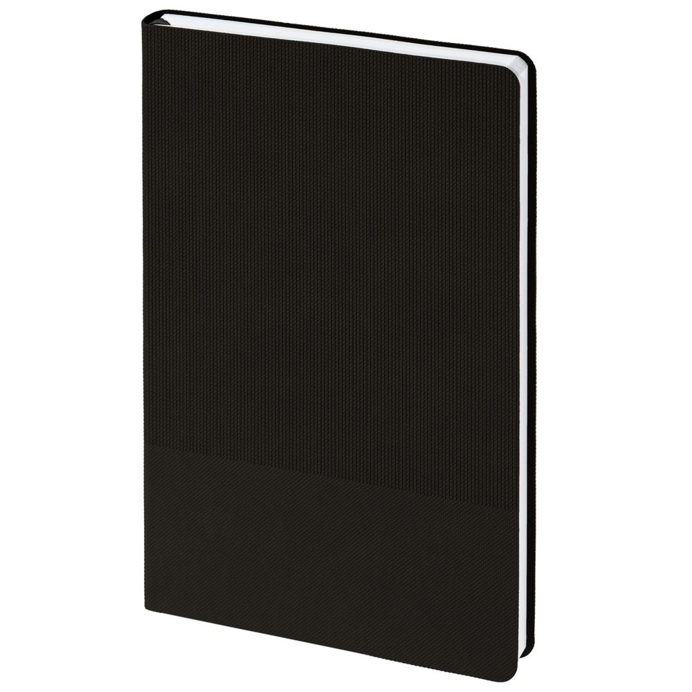 Ежедневник с гибкой обложкой, выполнен из материала Canyon, черный АА, дополнен ляссе в цвет обложки. Блинтовое тиснение на обложке создает эффект вязаного полотна.Блок 953, без календарной сетки и информационного блока:Кол-во страниц — 192;Бумага — белая, плотность 70 г/м?;Форзац и нахзац — белые.