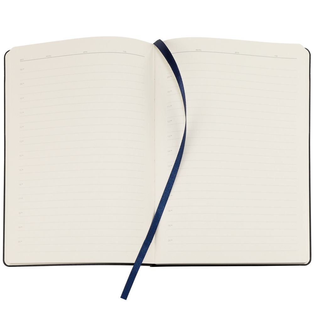 Ежедневник с гибкой обложкой, выполнен из материала Nubuck, темно-синий ХХ, дополнен петлей-лейблом для ручки и ляссе в цвет материала.Блок 986, недатированный, без календарной сетки:Кол-во страниц — 256;Бумага — тонированная, плотность 70 г/м?.