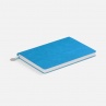 Ежедневник с гибкой обложкой, выполнен из материал La Fite, голубой JJ, дополнен ляссе в цвет обложки с металлическим шильдом.