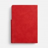 Ежедневник с твердой обложкой и фигурным магнитным клапаном, дополнен капталом и двойным ляссе.