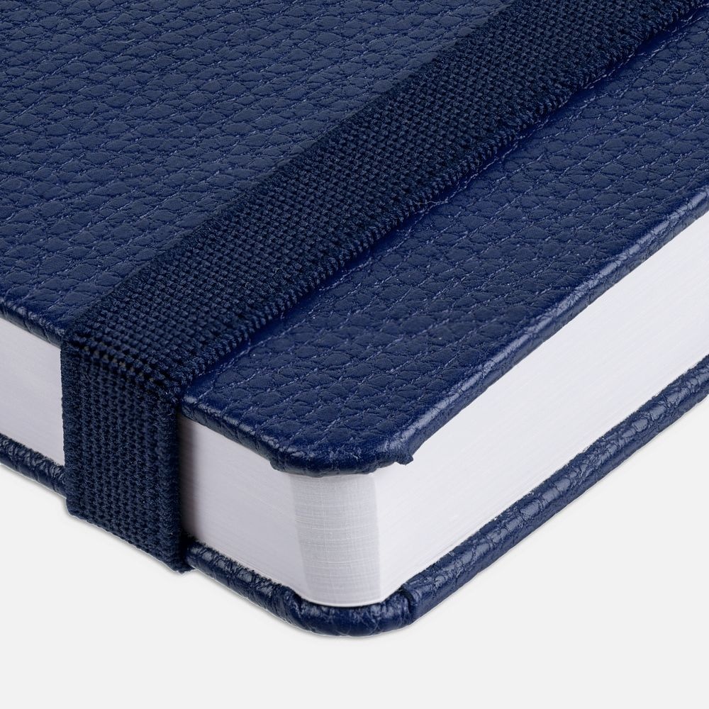 Зауженный ежедневник с круглым металлическим шильдом на резинке.Ежедневник с твердой обложкой, выполнен из материала LaFite, темно-синий ХХ,дополнен резинкой с металлическим круглым шильдом и ляссе в цвет обложки.Блок 951, без календарной сетки и информационного блока:Кол-во страниц — 256;Бумага — белая, плотность 70 г/м?;Форзац и нахзац — белые.
