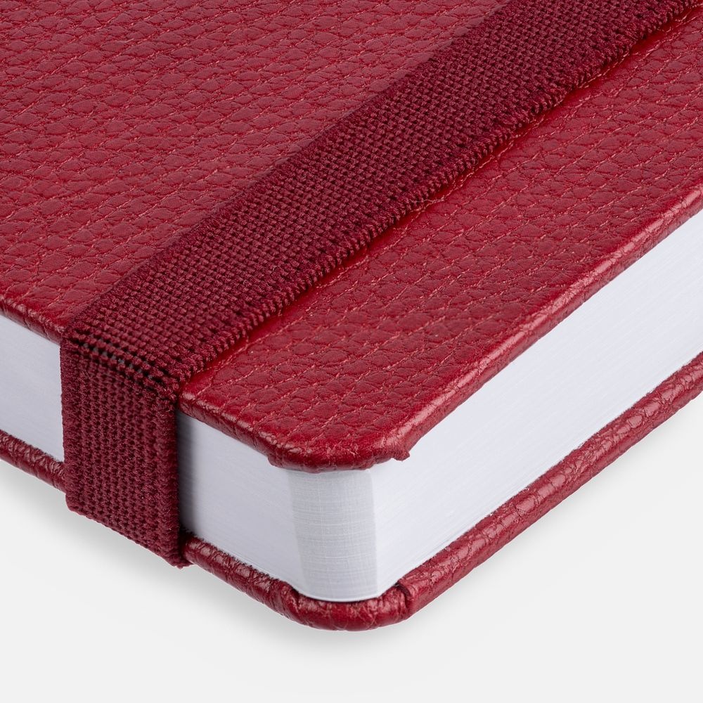 Зауженный ежедневник в фактурной обложке — характерный рисунок прожилок и морщинок создает эффект натуральной кожи с грубым рисунком.Ежедневник с твердой обложкой, выполнен из материала LaFite, красный РР, дополнен резинкой и ляссе в цвет обложки.Блок 951, без календарной сетки и информационного блока:Кол-во страниц — 256;Бумага — белая, плотность 70 г/м?;Форзац и нахзац — белые.