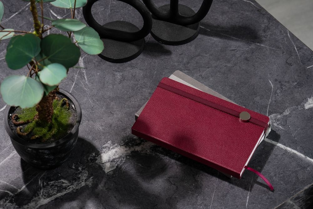Зауженный ежедневник в фактурной обложке — характерный рисунок прожилок и морщинок создает эффект натуральной кожи с грубым рисунком.