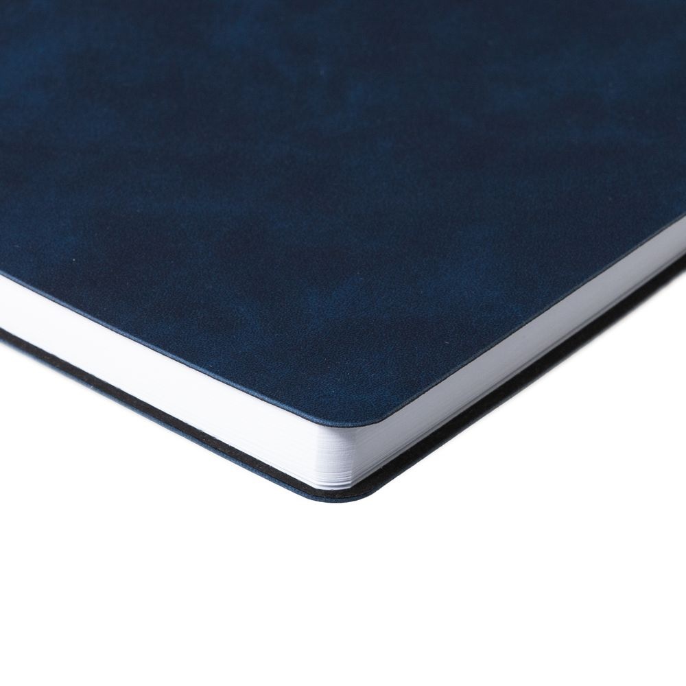 Ежедневник с гибкой обложкой, выполнен из материала Nubuck Touch, темно-синий XX, дополнен ляссе и петлей-резинкой для ручки черного цвета.Блок 953, без календарной сетки и информационного блока:Кол-во страниц — 192;Бумага — белая, плотность 70 г/м?;Форзац и нахзац — белые.