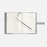 Ежедневник в мягком переплете со съемной обложкой, дополнен застежкой-хлястиком с металлическим шильдом на кнопке, двойным ляссе и капталом.