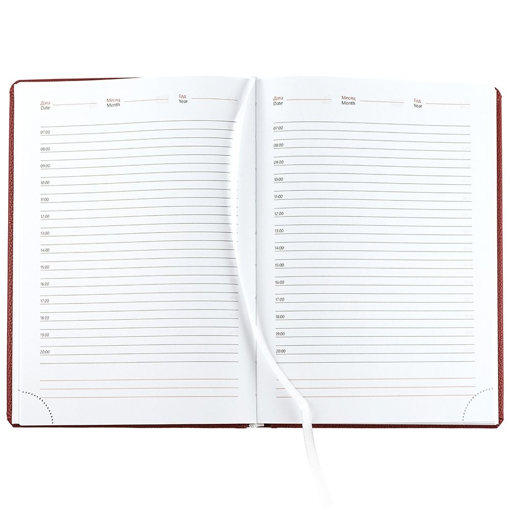 Ежедневник в твердой обложке c поролоном, выполнен из материала La Fite, красный РР, дополнен ляссе белого цвета.Блок 920:Кол-во страниц — 336;Бумага — белая, плотность 70 г/м?;Форзац и нахзац — белого цвета.