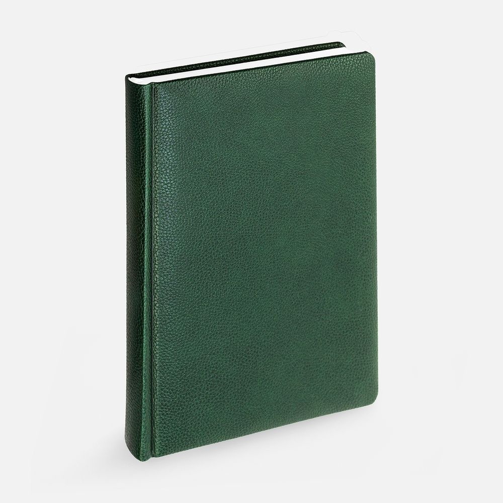 Ежедневник в твердой обложке c поролоном, выполнен из материала La Fite, зеленый FF, дополнен ляссе белого цвета.