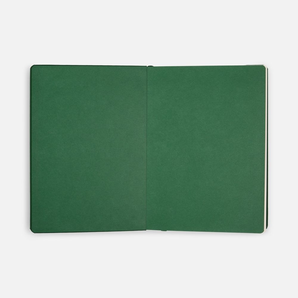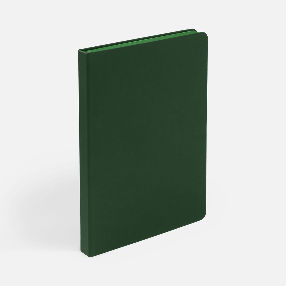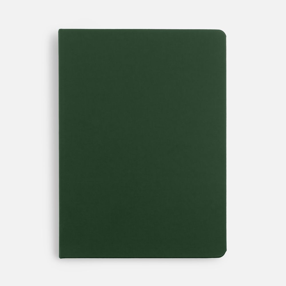 Ежедневник с твердой обложкой и тонированным обрезом, выполнен из материала Soft Touch, зеленый FF, дополнен ляссе в цвет обложки.Блок 986, без календарной сетки и информационного блока:Кол-во страниц — 256;Бумага — тонированная, плотность 70 г/м?;Форзац и нахзац — зеленые.