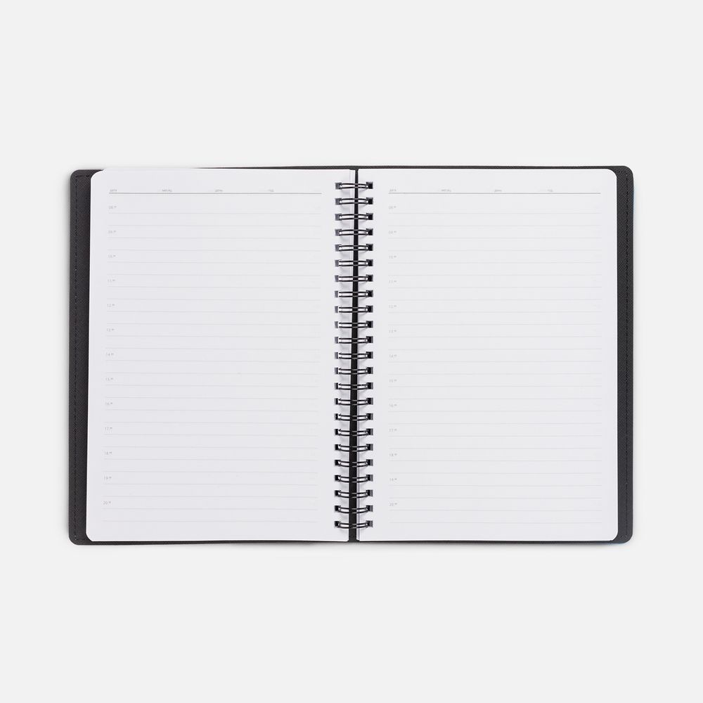 Ежедневник с гибкой обложкой, выполнен из материалов Soft Touch Ultra, голубой JJ и Nice touch, черный АА.Блок 206, без календарной сетки и информационного блока: Кол-во страниц — 256;Бумага — белая, плотность 70 г/м?.