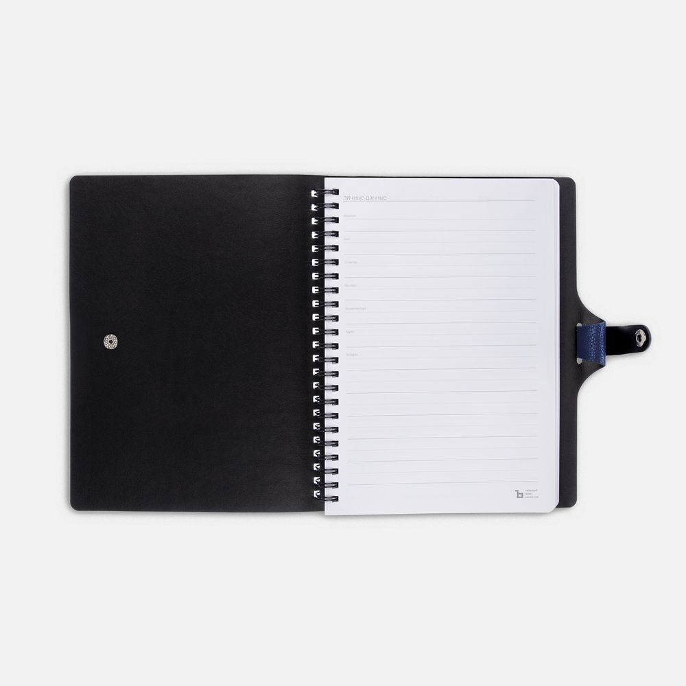 Ежедневник с гибкой обложкой, выполнен из материалов La Fite,темно-синий ХХ и Waltz черный АА.