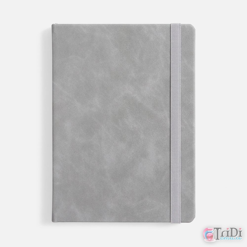 Ежедневник с твердой обложкой, выполнен из материала Nubuck Touch, серый СС, дополнен ляссе темно-серого цвета.Блок 986, без информационного блока: Кол-во страниц — 256;Бумага — тонированная, плотность 70 г/м?;Карман на нахзаце.