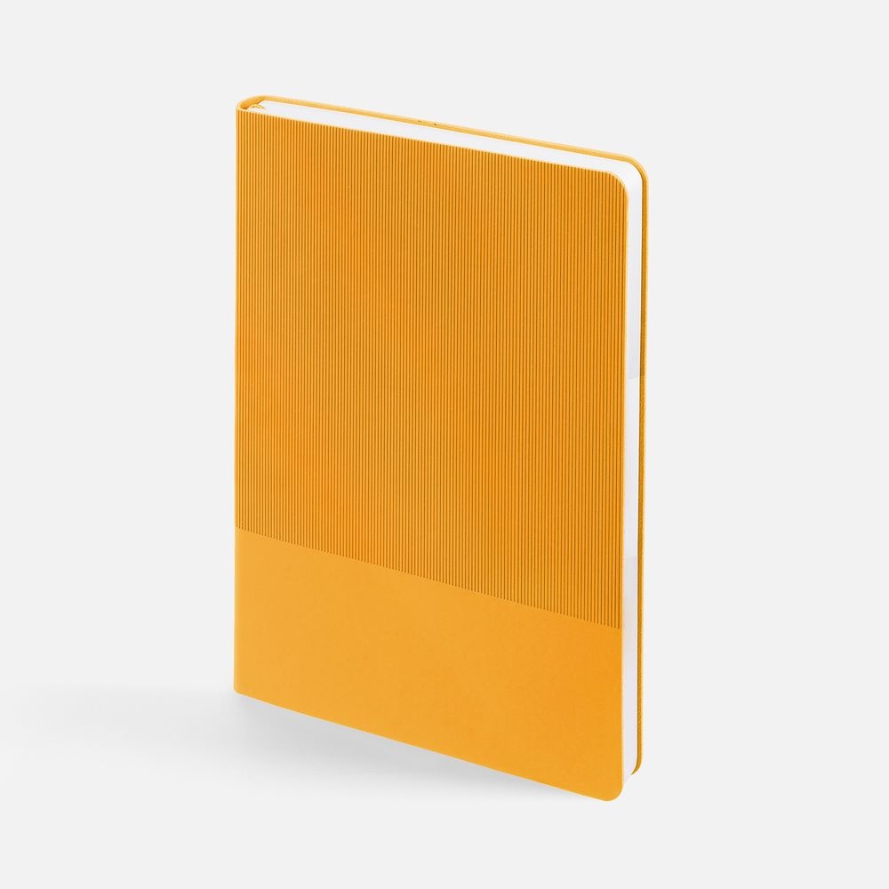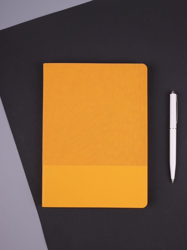 Фактурное тиснение на обложке освежает вид классического ежедневника, а также дополнительно выделяет пространство внизу, словно специально оставленное для нанесения логотипа.Ежедневник с гибкой обложкой выполнен из материала Soft Touch, желтый KK и Latte, желтый (внутренний материал); дополнен ляссе желтого цвета и фактурным тиснением обложки.Блок 985, без информационного блока:Кол-во страниц — 256;Бумага — белая, плотность 70 г/м?;Форзац и нахзац — белые.