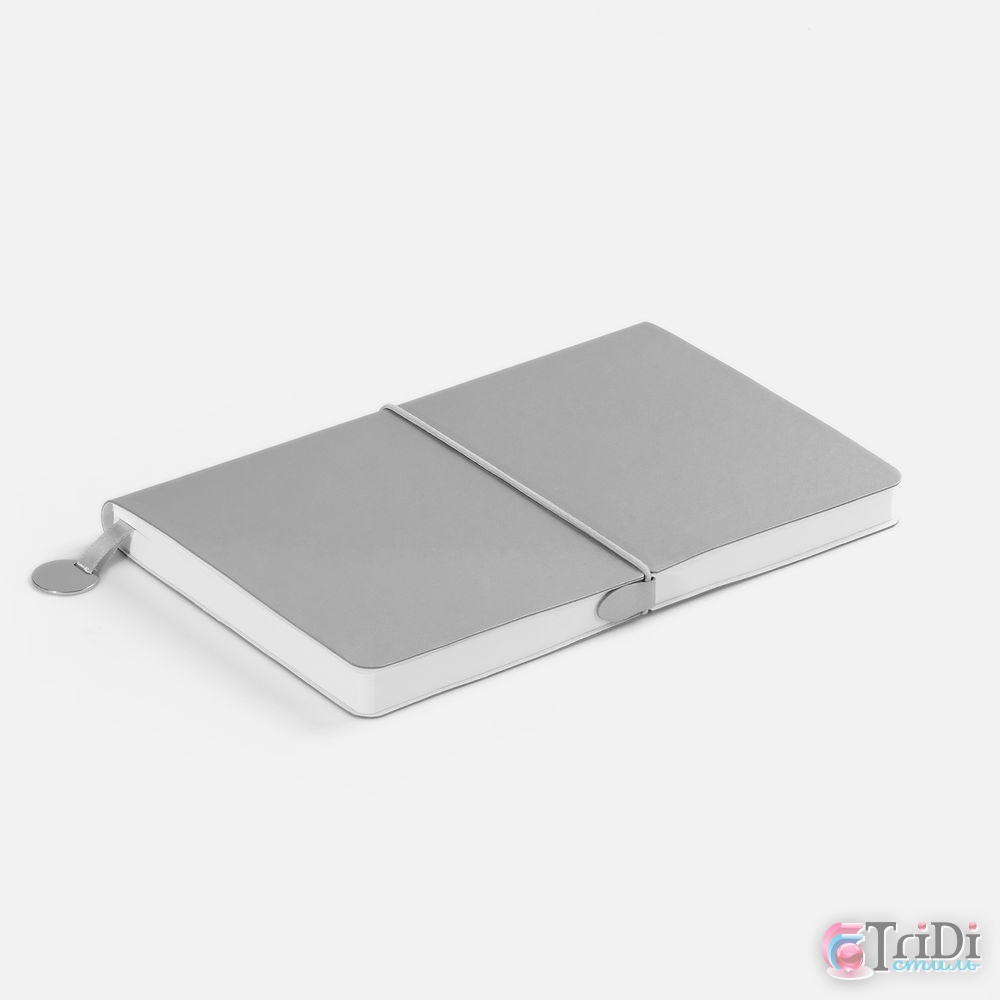 Ежедневник с гибкой обложкой, выполнен из материала Waltz, серебристый DD, дополнен ляссе в цвет обложки с металлическим шильдом.Блок 951, без календарной сетки и информационного блока:Кол-во страниц — 256;Бумага — белая, плотность 70 г/м?;Форзац и нахзац — белые.