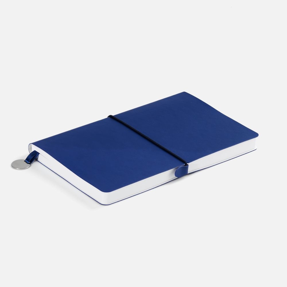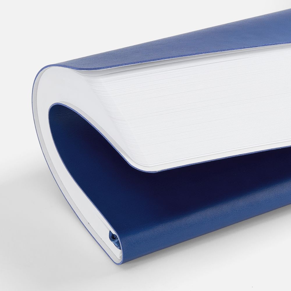 Ежедневник с гибкой обложкой, выполнен из материала Waltz, синий НН, дополнен ляссе в цвет обложки с металлическим шильдом.Блок 951, без календарной сетки и информационного блока:Кол-во страниц — 256;Бумага — белая, плотность 70 г/м?;Форзац и нахзац — белые.